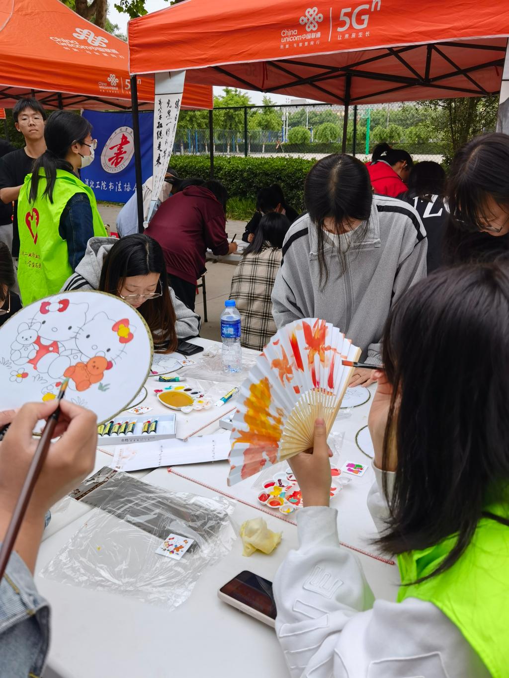 同学们在“彩虹树”上按下启动手印,本次实践体验活动正式拉开了帷幕。活动现场,有汉服礼仪、拉花舞蹈、传统乐器、经典茶艺、软笔书法等传统文化体验,也有簪子、缠花、团扇、油纸伞等传统手工制作。学生们积极参与,热情高涨,并纷纷带着体验成果在“彩虹相框”留念合影。