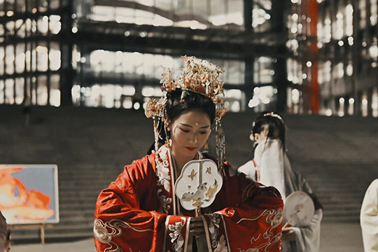本次演出共设三幕。第一幕是“盛唐风韵”,表演者通过歌舞剧表演“盛唐夜唱”、汉服走秀展示等环节,展示了唐代时期的节日文化。第二幕是“大明风华”,社团成员们以歌舞剧“宝玉娶亲”的场景还原、诗词接龙飞花令的互动游戏,介绍了明朝时期的传统活动。第三幕是“衣冠尚国”,现场参与同学们一起进行了猜灯谜、传统文化知识抢答等游戏,激发了同学们学习我国传统文化知识的热情。