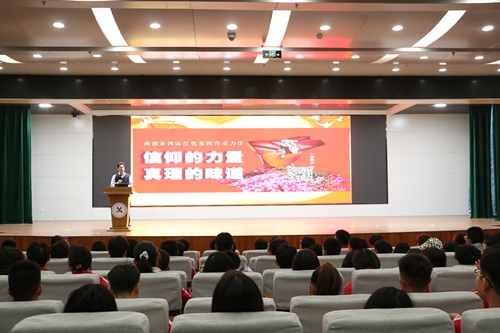 为深入学习贯彻党的二十大精神,引导青年学生坚定理想信念,传承红色基因,践行“强国有我、青春有为”的青春誓言。11月19日,学校聘请团中央井冈山教育基地党群工作处处长钟国华老师担任主讲人为新生团学干部教授音乐党课—《歌声钟的红色记忆》。