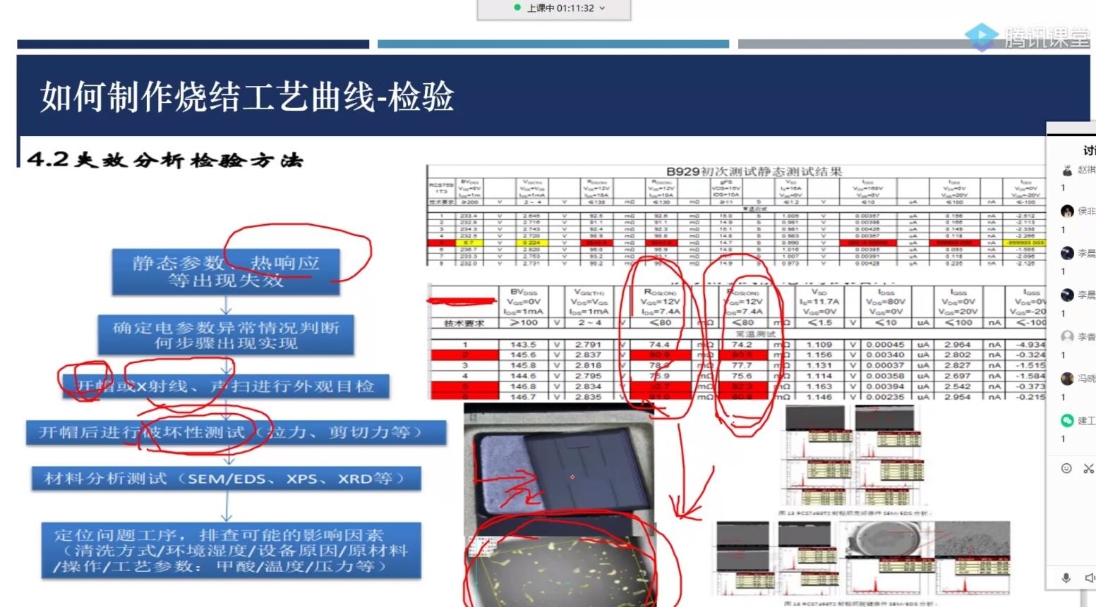 讲座中,李老师从什么是VDMOS产品、如何生产VDMOS产品、烧结工序在VDMOS产品中的作用、如何制作烧结工艺曲线四个方面展开讲述。首先,李老师简要介绍了VDMOS产品的概念。随后,进一步介绍了VDMOS产品是如何生产的,以及烧结工序在VDMOS产品中的作用。最后,李老师重点讲述了如何制作烧结工艺曲线,关于芯片、外壳、准备、实验、检验的具体操作,并详细介绍了每个操作的具体步骤。李老师的讲解周密详细、深入浅出,让同学们了解到VDMOS器件的广泛应用和优势特征。