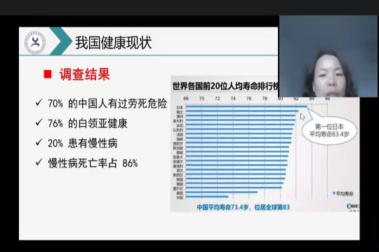 健康的身体是幸福生活的源泉。4月14日晚,环境与化学工程系李文红老师通过腾讯课堂以“小身体 大健康——谈谈健康那点事”为主题,为同学们带来了一场关于健康文化的讲座。
