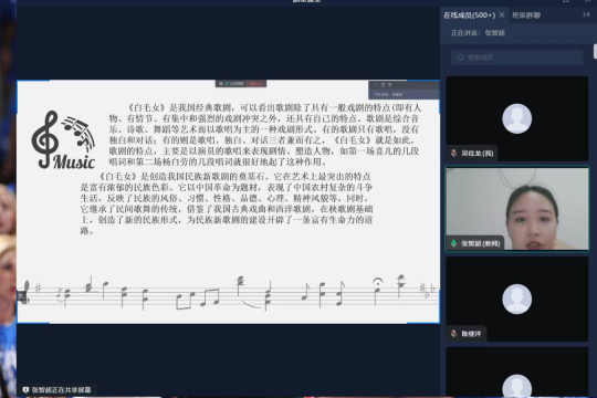 本次大课堂通过张老师生动细致的讲解,拉近了同学们与中国歌剧的距离。丰富了同学们对中国歌剧知识的深入理解,激发了同学们学习中国歌剧浓厚的兴趣以及热爱祖国文化、热爱家乡的美好情感。