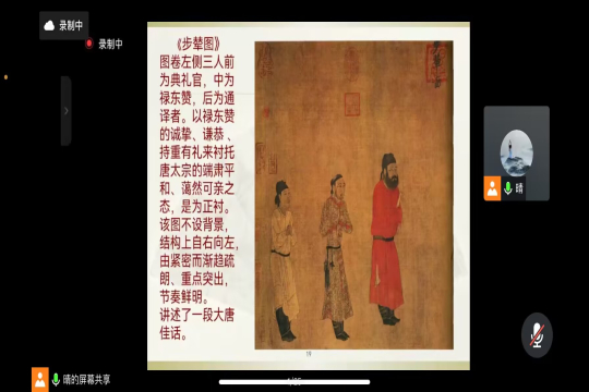 中国文化博大精深,绘画艺术源远流长。2022年11月15日晚,河北省民间工艺美术大师尹见情老师以“中国画的风采”为主题带领同学们学习中国画的历史,欣赏中国画的艺术魅力。