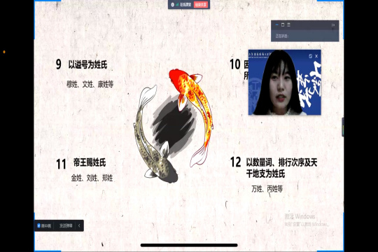中华姓氏文化历史悠久,源自上古延续至今。11月17日晚,基础课教学部冯丹琳老师通过超星课堂平台线上授课方式以“中国字·百家姓”主题展开精彩讲座,为同学们讲解有关中国姓氏文化的知识。