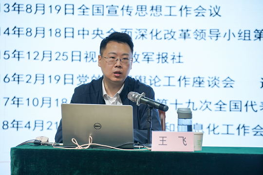 报告中,王飞首先分析了在全媒体时代背景下,高校新闻舆论工作面临的挑战。王飞结合工作实际和社会热点网络舆情案例,从网络舆情引导原则、实操步骤、优化环节、事后工作和事前演练等五个方面展开讲解,探讨在全媒体背景下如何进行网络舆情防控与引导。并强调完成新形势下的党的思想宣传工作,辅导员要自觉承担起举旗帜、聚民心、育新人、兴文化、展形象的使命任务,科学认识网络传播规律,提高用网治网水平和网络思政教育能力。