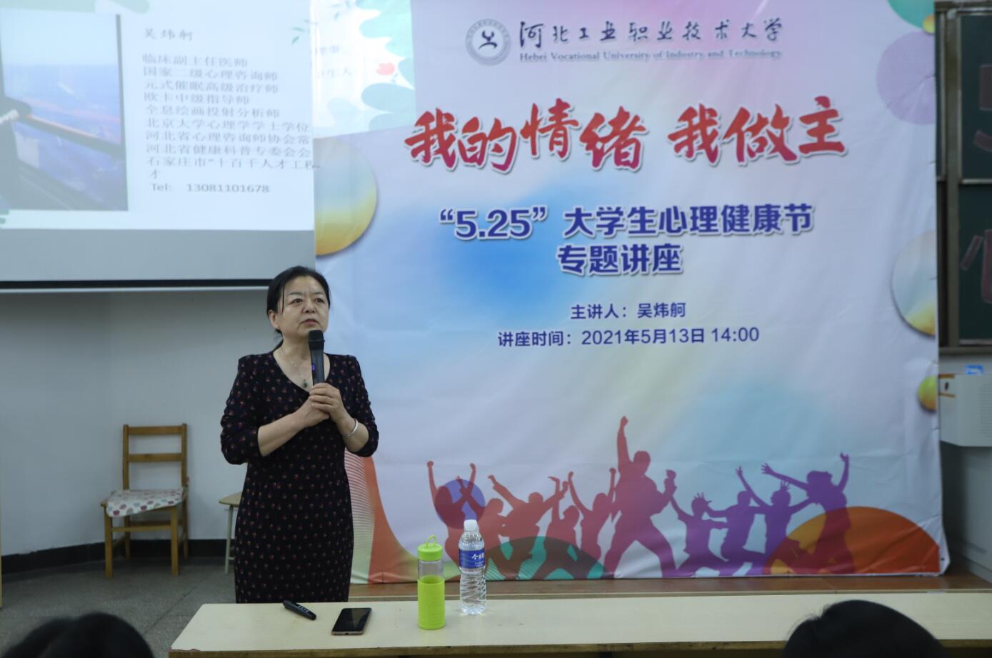 为充分发挥“心理育人”实效,加强对学生的人文关怀和心理疏导,5月13日下午,2021年“5·25”心理健康节首场专题讲座在红旗校区3119举行。乐鱼网页版邀请到临床副主任医师、国家二级心理咨询师吴炜舸老师做“我的情绪我做主”心理专题讲座,200余名师生现场聆听。