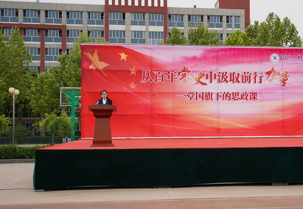 迎着凉爽的晨风,鲜艳的五星红旗冉冉升起,“国旗下的思政课”在庄严的国歌声中正式开始。马克思主义学院房丽娟老师带领同学们回顾百年党史,深情讲述了中国共产党矢志践行初心使命、筚路蓝缕奠基立业、创造辉煌开辟未来的苦难与辉煌,让在场师生从有血有肉、有骨有气的百年党史中,感受到伟大的震撼、平凡的感动,顶天的气概、立地的干劲。鼓舞师生传承红色基因,站在“两个一百年”奋斗目标的历史交汇点上,不负韶华做时代的追梦人!