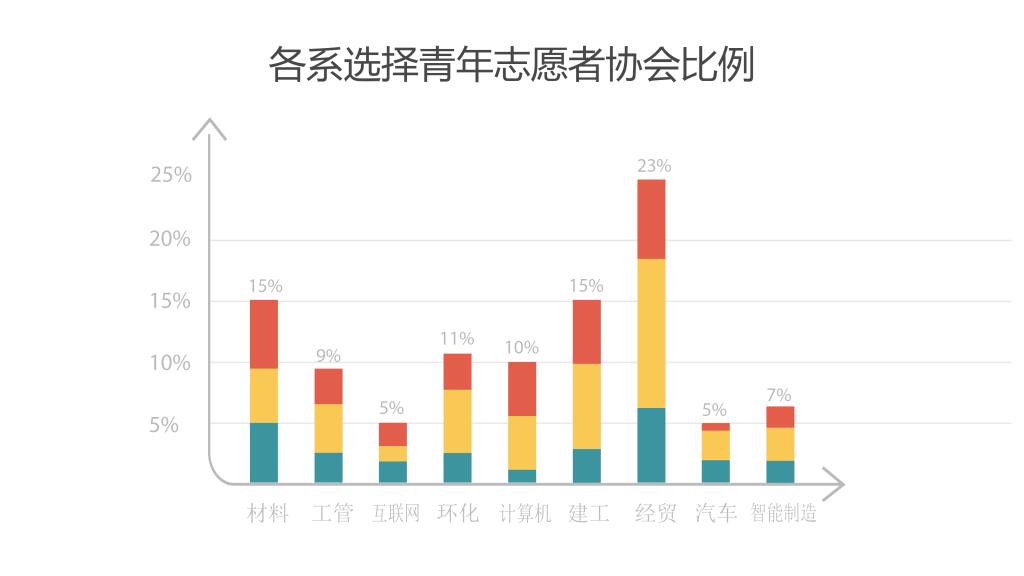 经贸系、建工系、材料系的新生更倾向于加入青年志愿者协会。