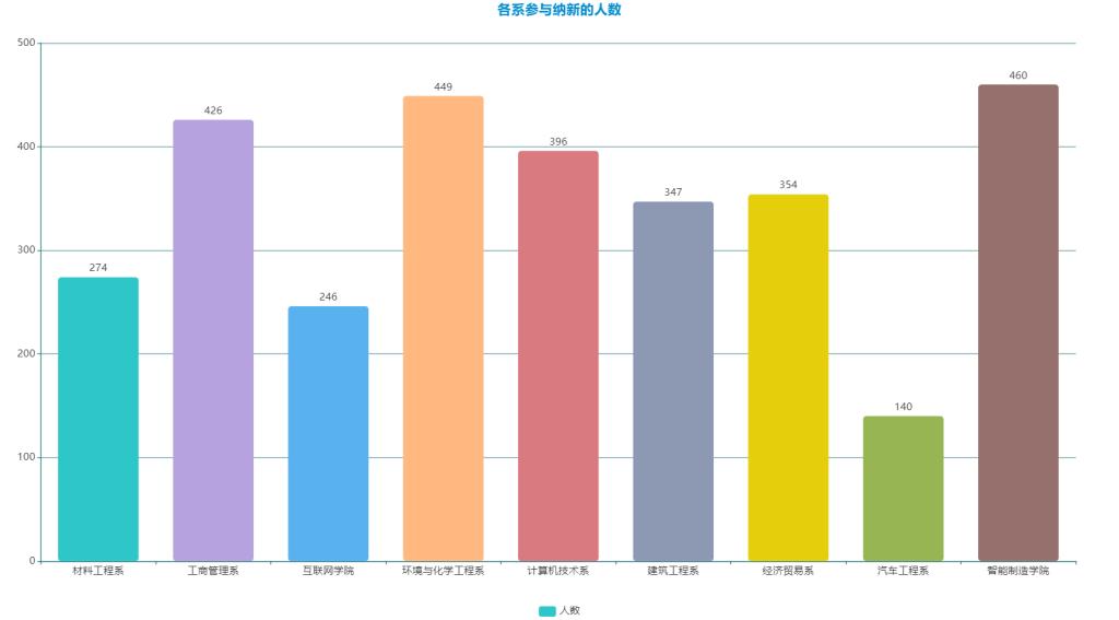 各系参与纳新人数,智能制造学院、环境与化学工程系、工商管理系位列前三。