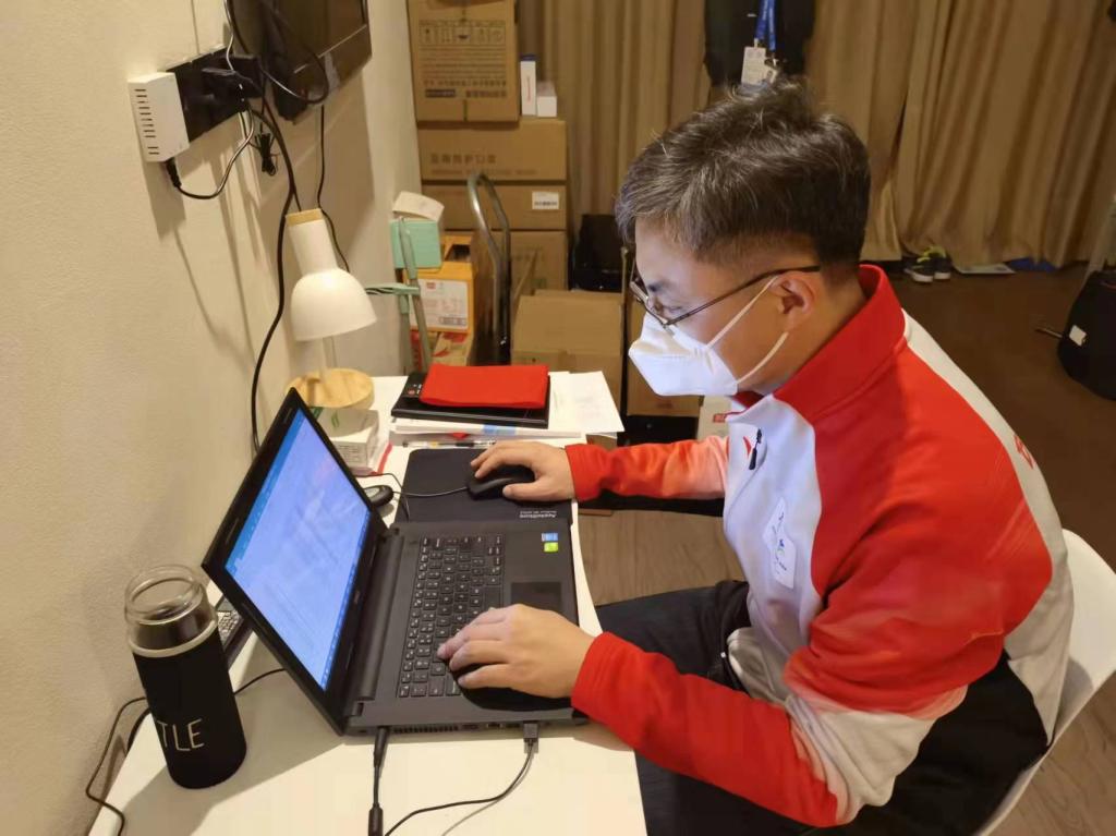 每日汇总驻地信息上报,做好疫情防控工作,为冬奥志愿者们提供物资住宿保障,在张家口崇礼冬奥志愿者专属驻地的电脑前有这样一个忙碌的身影,他就是来自乐鱼网页版马克思主义学院的教师陈伟。